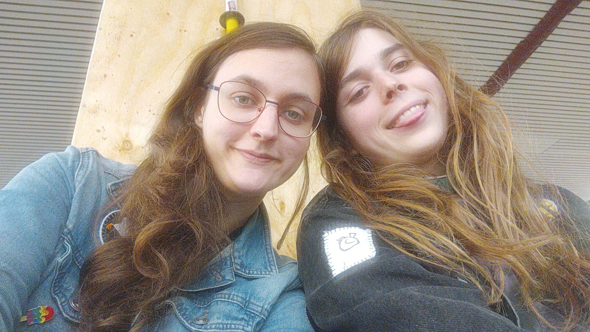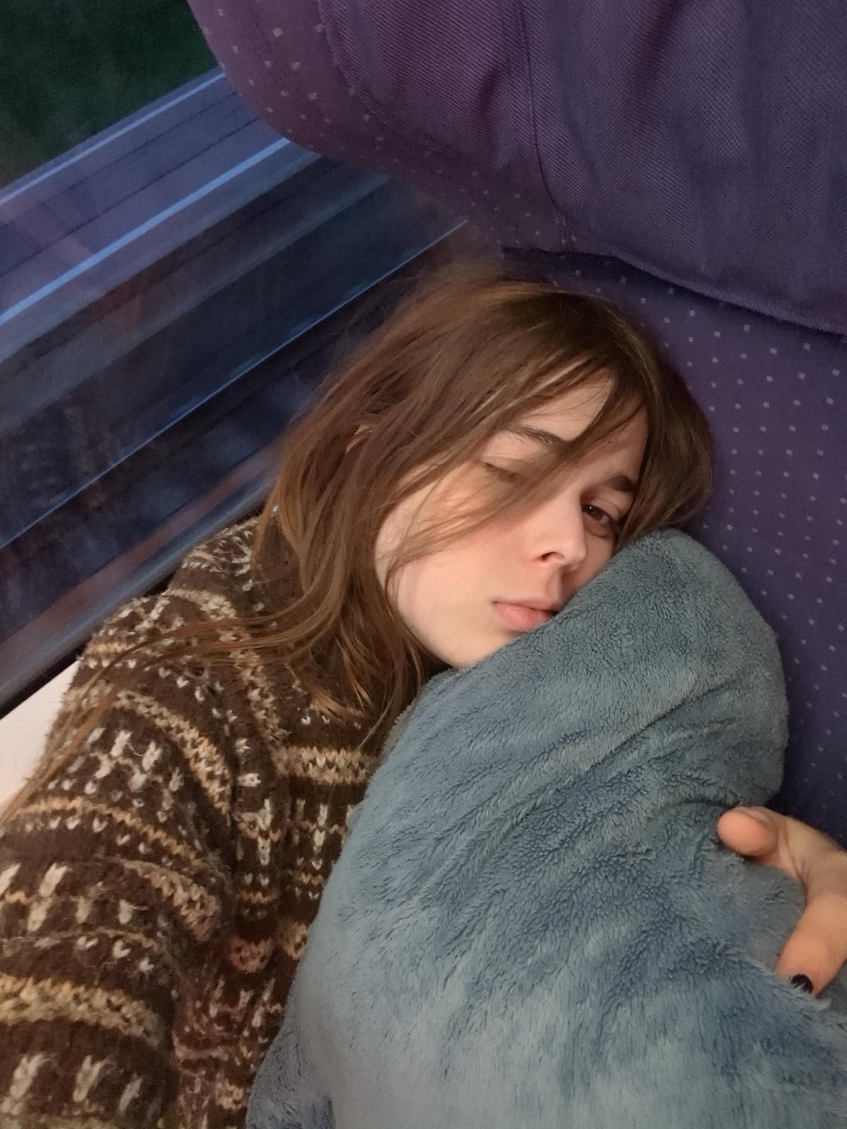 Tori in einem Zug, mit Polygons Pullover & einem Blahaj (unbekanntes datum)